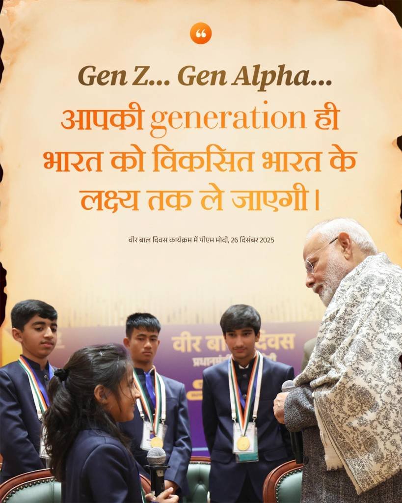 प्रधानमंत्री नरेन्द्र मोदी ने कहा है कि देश आज साहिबजादों के अनुकरणीय साहस और बलिदान को याद कर रहा है, जो देश का गौरव हैं। उन्होंने कहा कि पिछले चार साल में वीर बाल दिवस ने साहिबजादों की प्रेरणाओं और बलिदानों को युवा पीढ़ी तक पहुंचाया है। आज नई दिल्ली के भारत मंडपम में वीर बाल दिवस पर राष्ट्रीय कार्यक्रम को संबोधित करते हुए प्रधानमंत्री ने ये बात कही।