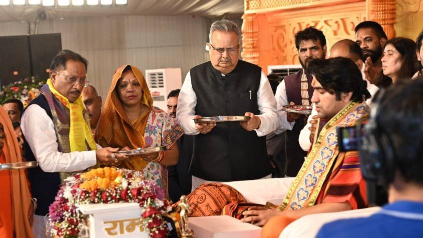 श्री विष्णु देव साय और डॉक्टर रमन सिंह पहुंचे दिव्य हनुमंत कथा में ,किया दर्शन पूजन और कथा श्रवण