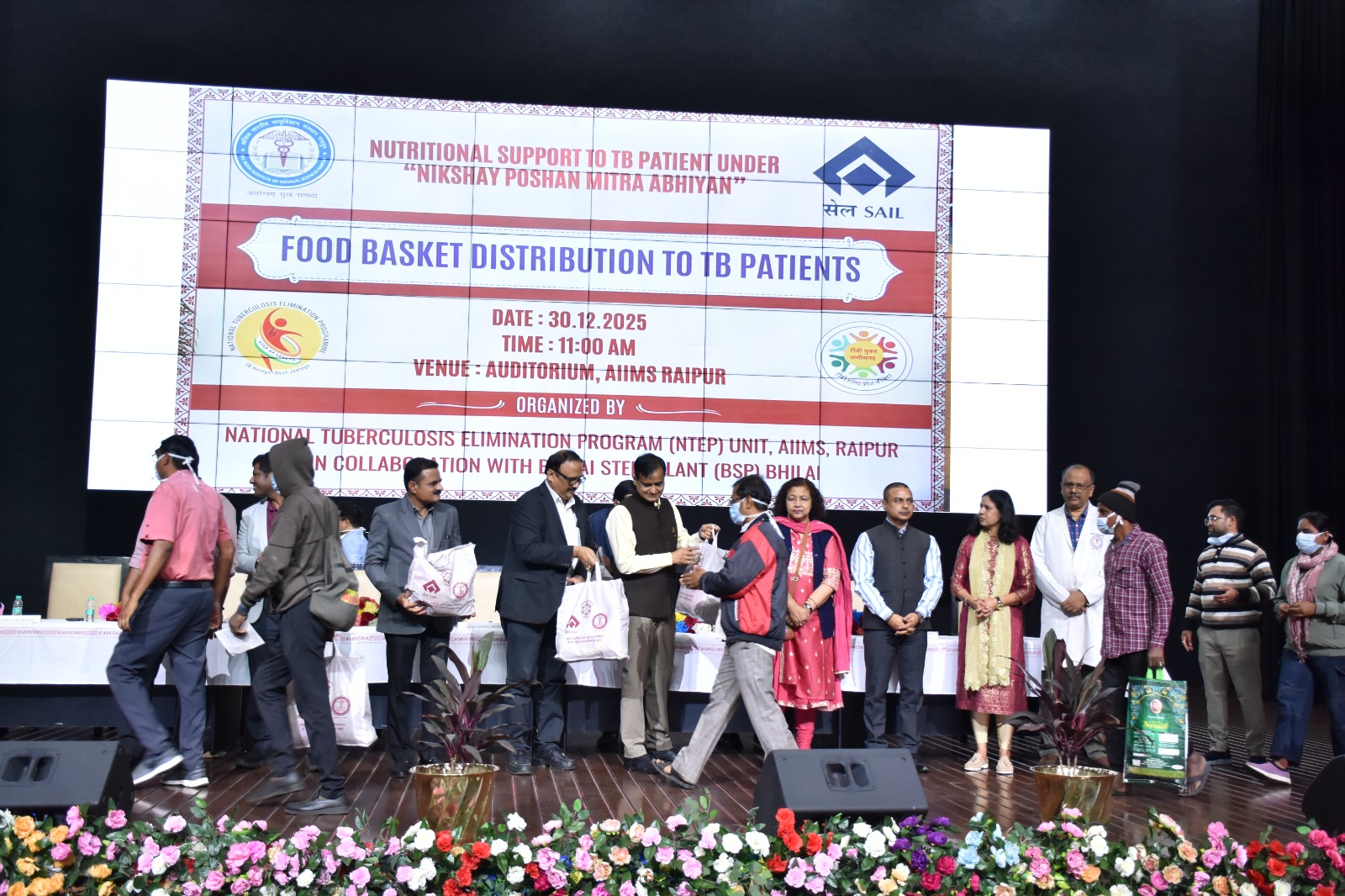 सेल भिलाई के सहयोग से एम्स रायपुर ने ‘निक्षय मित्र’ अभियान के तहत 500 टीबी रोगियों को वितरित किए पोषण किट