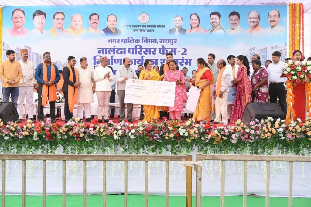 उप मुख्यमंत्री तथा नगरीय प्रशासन एवं विकास मंत्री श्री अरुण साव ने आज बसंत पंचमी के दिन रायपुर में नए नालंदा परिसर का भूमिपूजन किया। एनआईटी के सामने जीई रोड के किनारे 21 करोड़ 7 लाख रुपए की लागत से इस 1017 सीटर नालंदा परिसर फेज-2 का निर्माण किया जा रहा है। इससे शहर में उच्च शिक्षा हासिल कर रहे तथा विभिन्न प्रतियोगी परीक्षाओं की तैयारी कर रहे युवाओं को तैयारी का अच्छा माहौल मिलेगा। उन्हें ऑनलाइन तथा ऑफलाइन लाइब्रेरी के साथ ही अच्छी गुणवत्ता की अध्ययन सामग्री भी मिल सकेगी। वन एवं पर्यावरण मंत्री श्री केदार कश्यप, विधायकगण सर्वश्री राजेश मूणत, सुनील सोनी, मोतीलाल साहू, अनुज शर्मा तथा रायपुर की महापौर श्रीमती मीनल चौबे भी भूमिपूजन कार्यक्रम में शामिल हुईं।