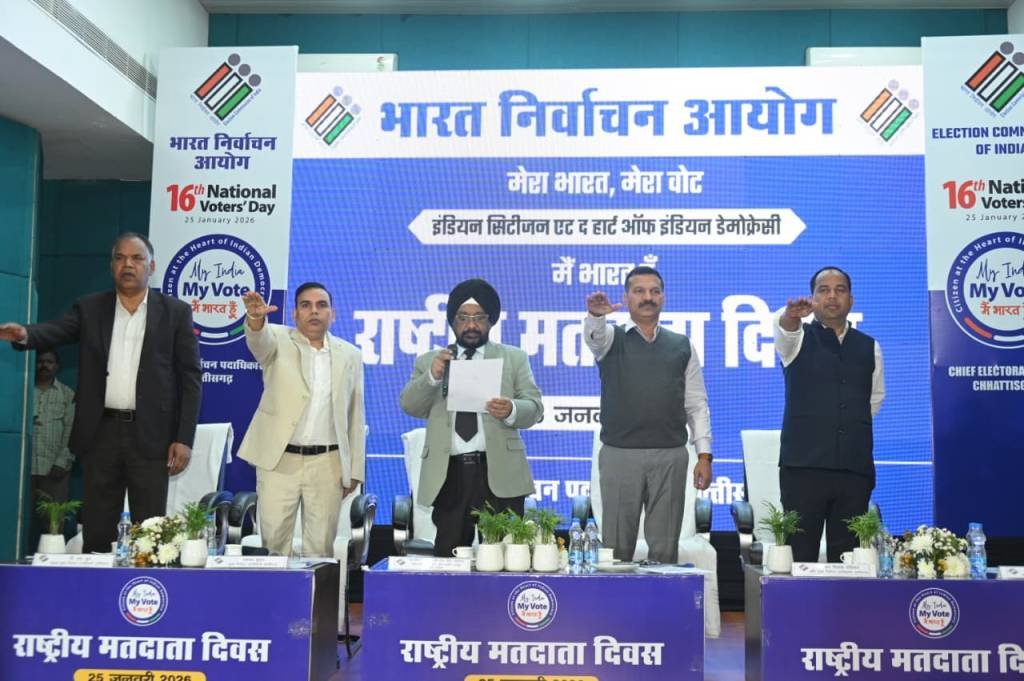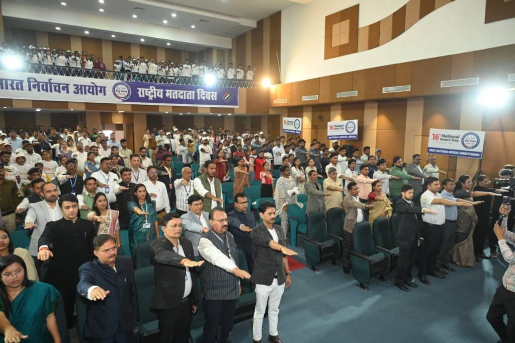 राष्ट्रीय मतदाता दिवस के अवसर पर कार्यक्रम में उपस्थित सभी लोगों को मतदाता शपथ दिलाई गई।कार्यक्रम में नव मतदाताओं और निर्वाचन कार्यों में उल्लेखनीय योगदान देने वाले अधिकारियों-कर्मचारियों को और वर्ष 2025 के लिए सर्वश्रेष्ठ जिला निर्वाचन पुरस्कार अंतर्गत विभिन्न श्रेणियों में उत्कृष्ट कार्य करने वाले जिलों को सम्मानित किया गया। जिसमें ‘नवाचार आधारित मतदाता जागरूकता पहल’ के लिए दक्षिण बस्तर दंतेवाड़ा जिले को, ‘निर्वाचन प्रबंधन एवं व्यवस्थापन (लॉजिस्टिक्स)’ के लिए सूरजपुर जिले को, ‘प्रशिक्षण एवं क्षमता निर्माण’ के लिए दुर्ग जिले को तथा ‘निर्वाचन में प्रौद्योगिकी का प्रभावी उपयोग’ के लिए जशपुर जिले को सम्मानित किया।