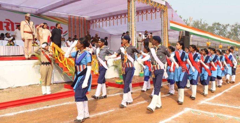सांसद श्रीमती कमलेश जांगड़े ने राष्ट्रीय ध्वज फहराकर ली परेड की सलामी
