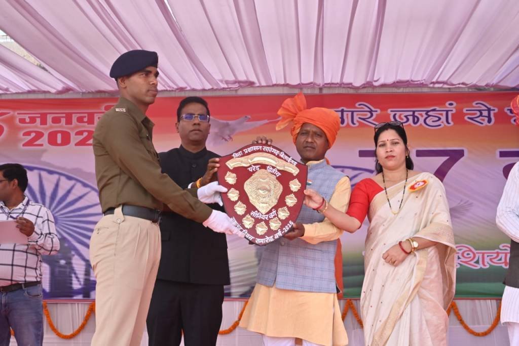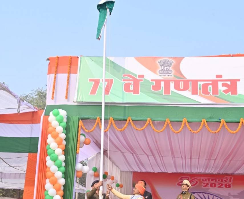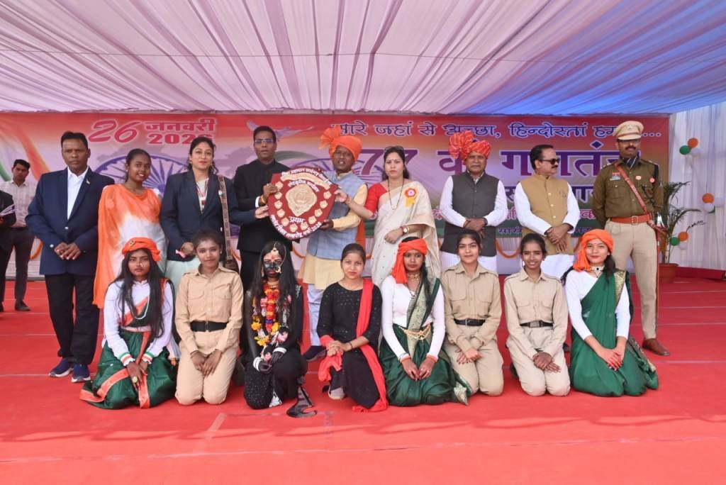77वें गणतंत्र दिवस समारोह के अवसर पर सारंगढ़ में आयोजित जिला स्तरीय समारोह में रायगढ़ सांसद श्री राधेश्याम राठिया ने तिरंगा फहराया। इस अवसर पर राष्ट्रीय गीत ‘वन्दे मातरम‘ के 150 वर्ष पूर्ण होने पर सभी ने राष्ट्रीय गीत का सामूहिक गायन किया। सांसद श्री राठिया ने परेड निरीक्षण कर परेड की सलामी ली। सांसद श्री राठिया ने छत्तीसगढ़ के मुख्यमंत्री श्री विष्णु देव साय के जनता के नाम संदेश का वाचन किया।