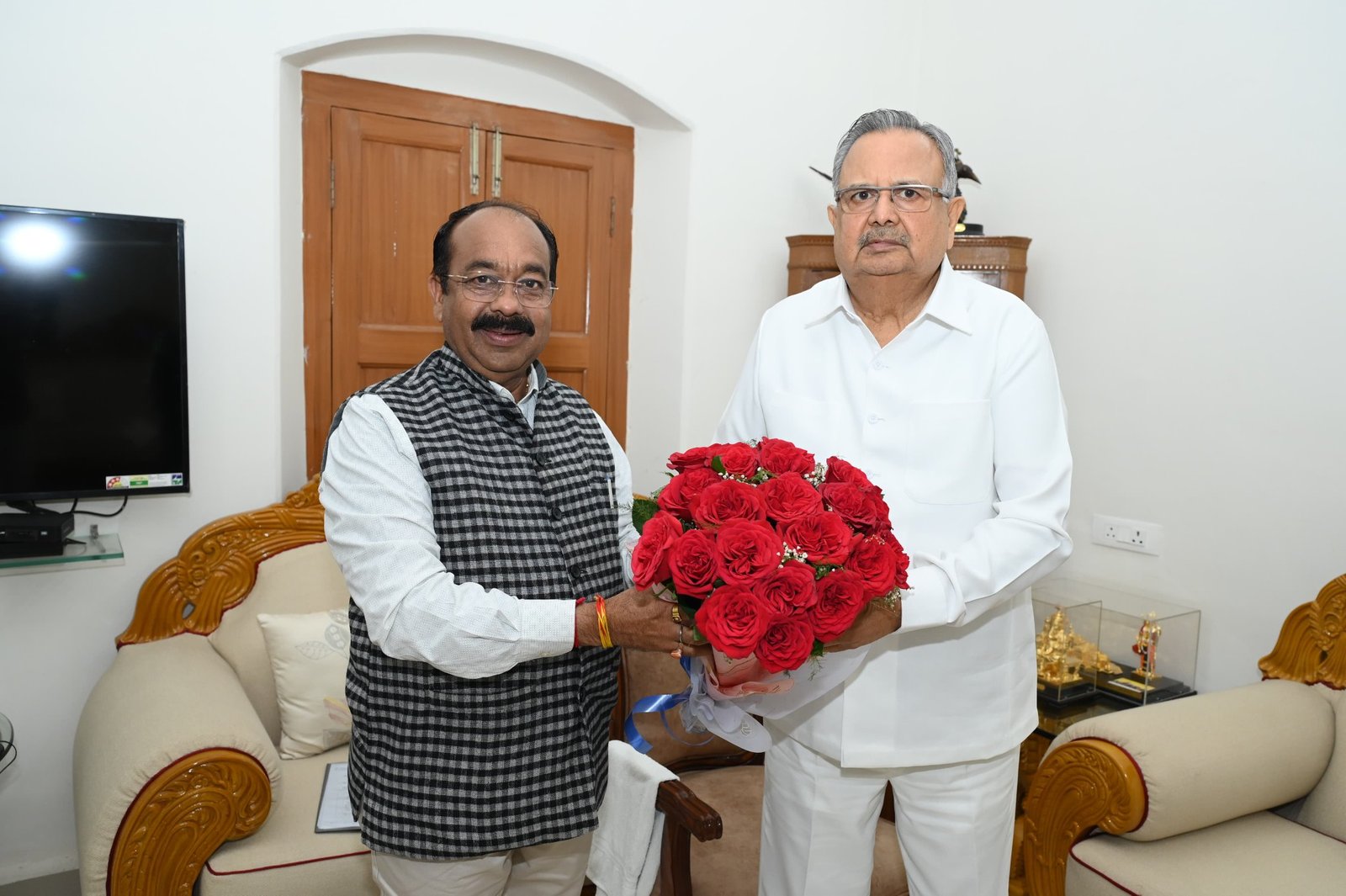 भारतीय जनता पार्टी के वरिष्ठ नेता और विधानसभा अध्यक्ष डॉक्टर रमन सिंह से उपमुख्यमंत्री श्री अरुण साव जी ने सौजन्य भेंट की।
