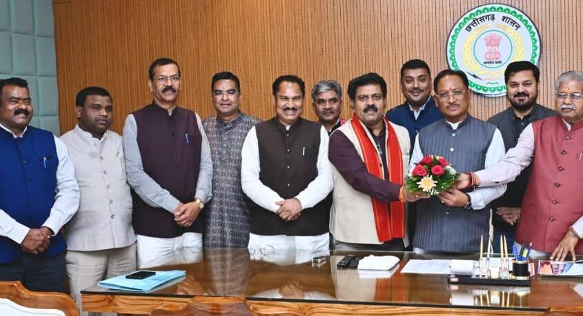 विधानसभा के बजट सत्र के सफल समापन पर मंत्रीगण एवं विधायकगण ने मुख्यमंत्री श्री विष्णु देव साय से विधानसभा स्थित उनके कार्यालय में भेंट कर उन्हें बधाई दी।